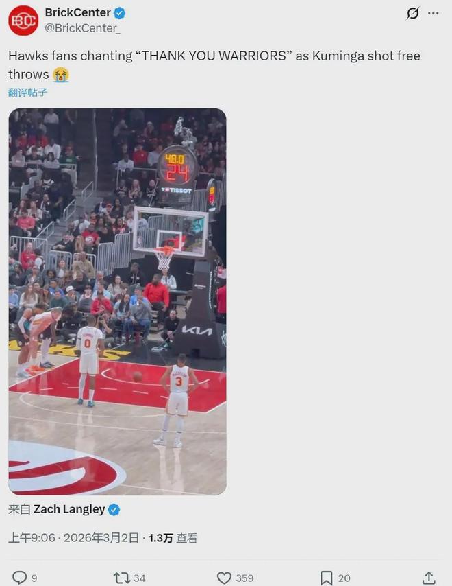 27+17+20!库明加隔扣杨瀚森!谢谢你,勇士队