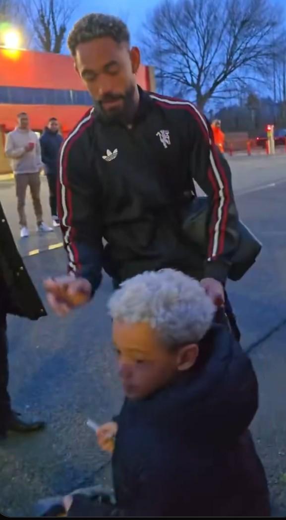 赛后库尼亚来到老特拉福德场外为等候已久的曼联球迷耐心签名,甚至让儿子一同帮忙。