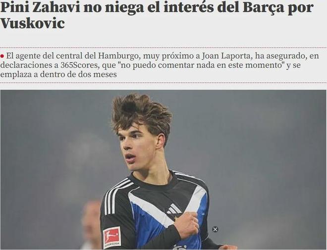 根据德国天空体育的报道,巴萨正密切关注热刺外租新星武什科维奇,不过球员的经纪人扎哈维冷却了转会传闻。